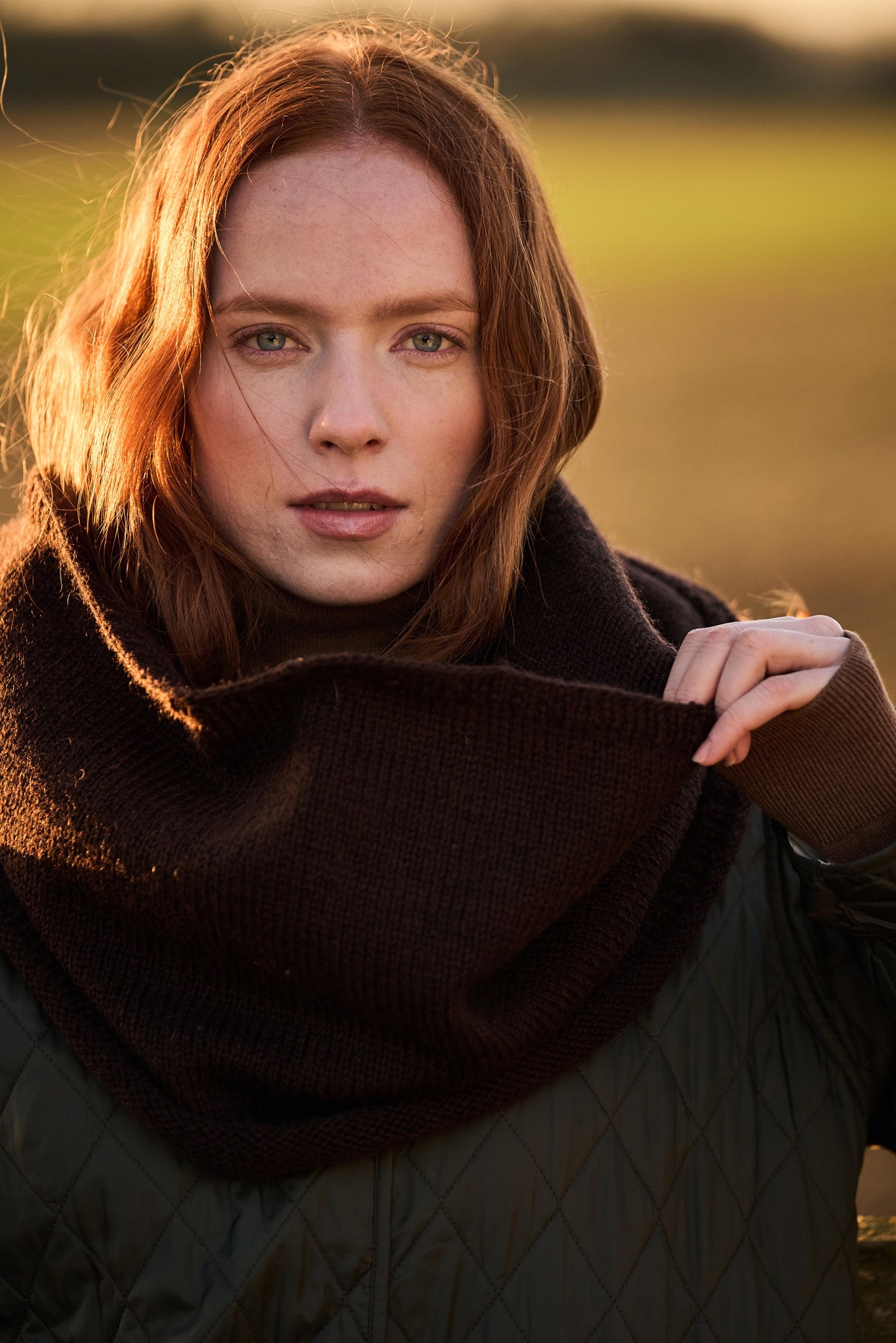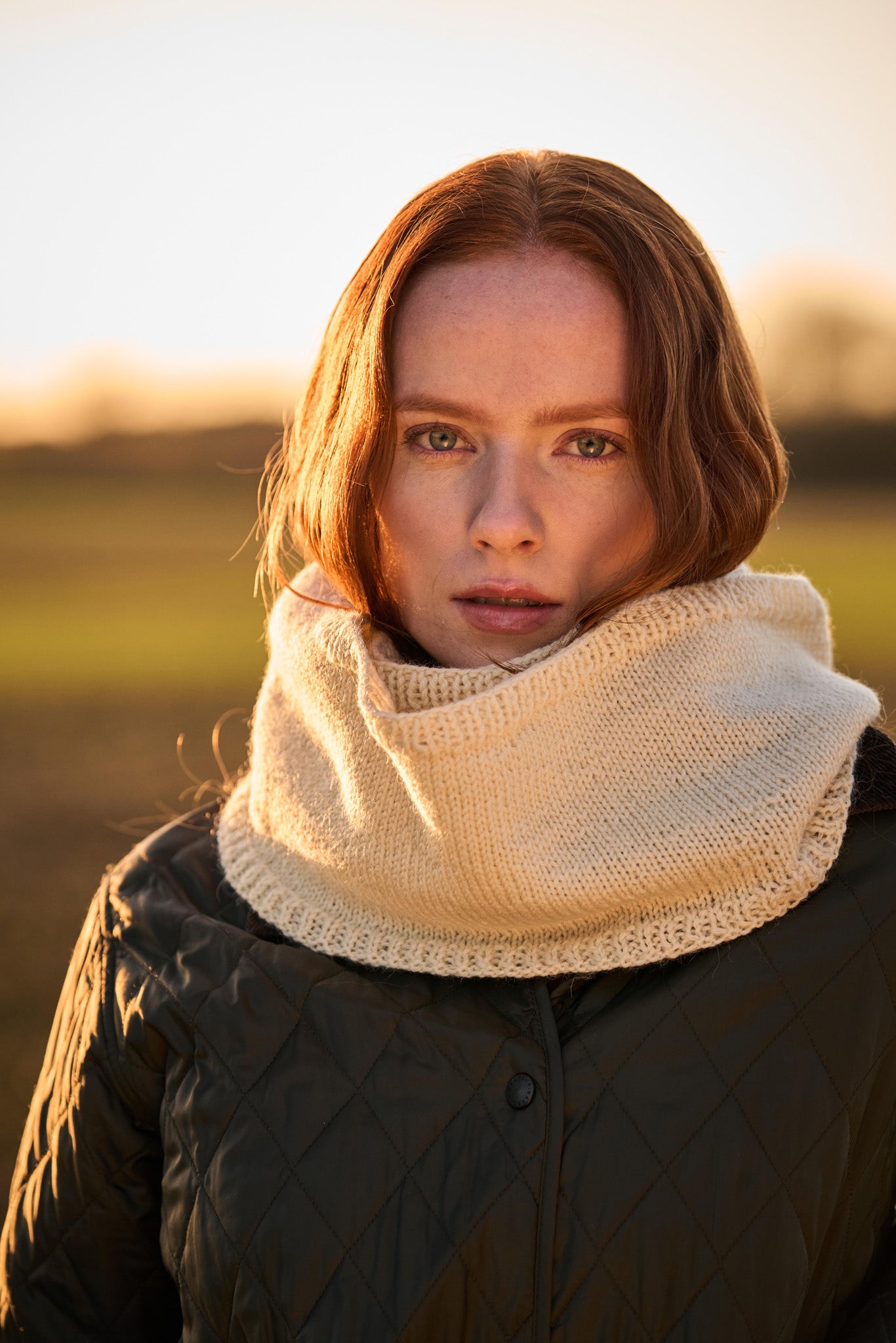Completed cowl meas 180 cm (70¾ in) circumference and 27 cm deep.