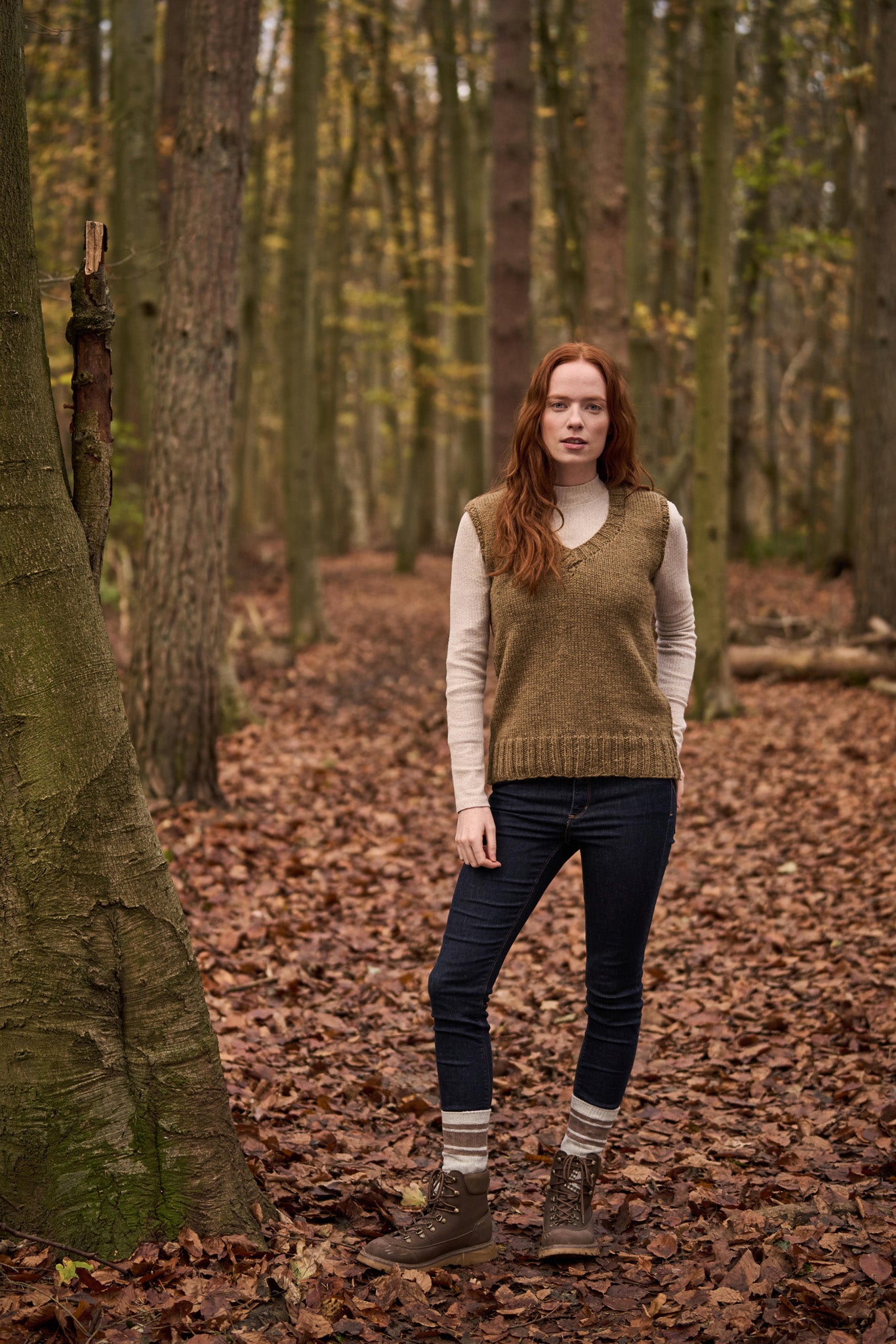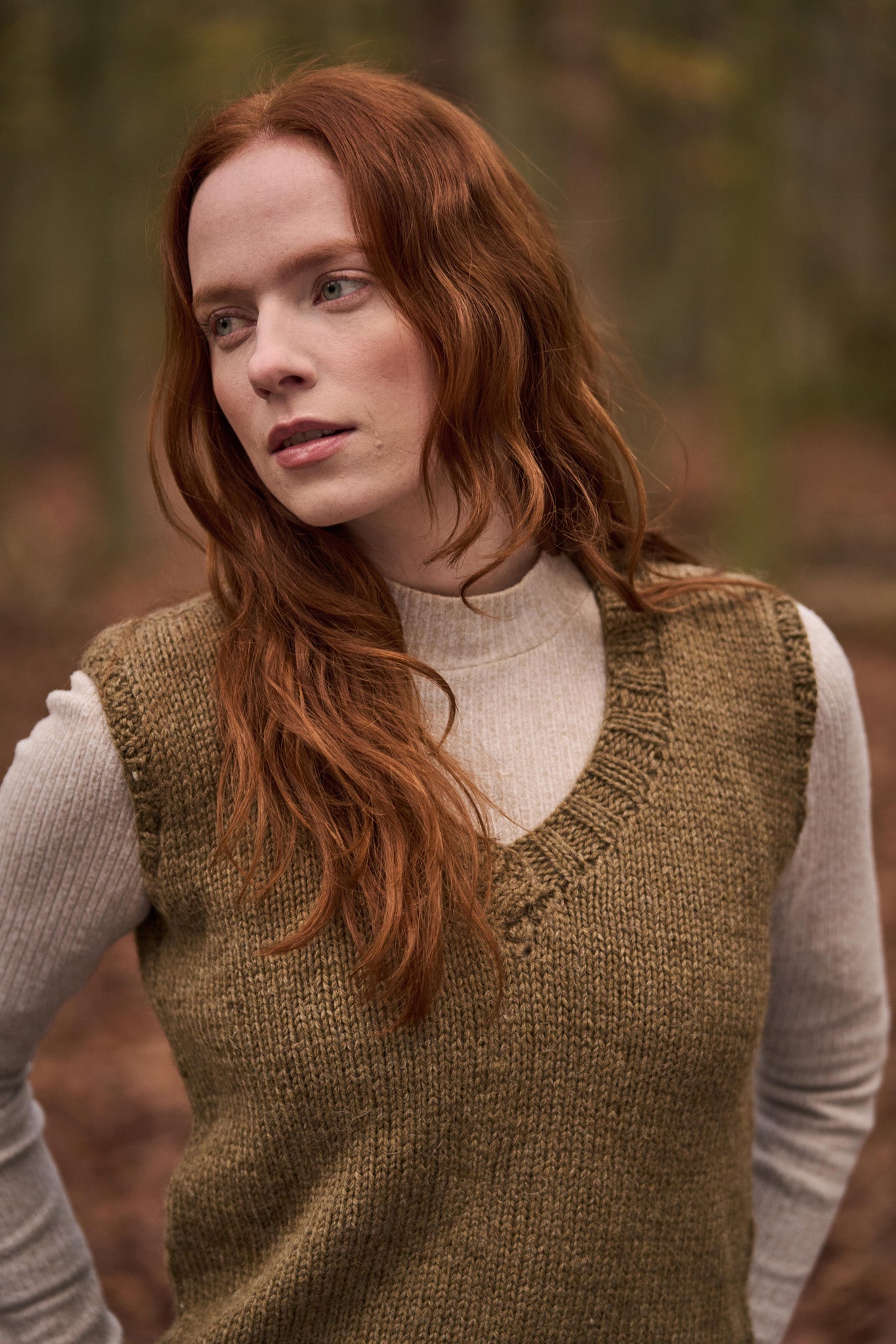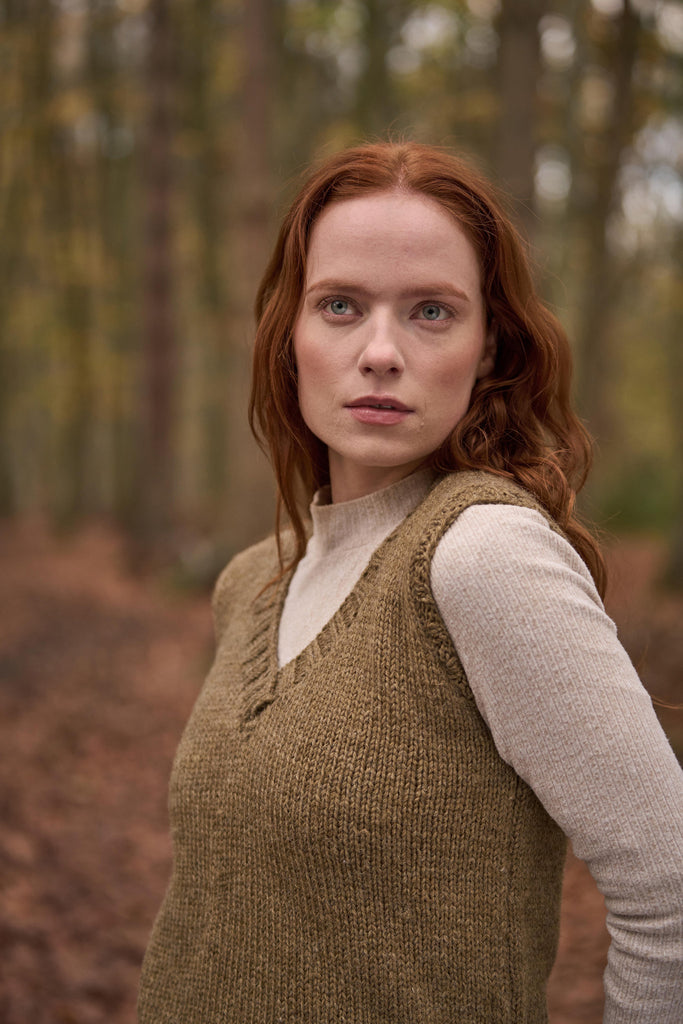 16 sts and 24 rows to 10cm / 4 in on 5.5mm (US 9) needles over stocking stitch holding yarn double once blocked